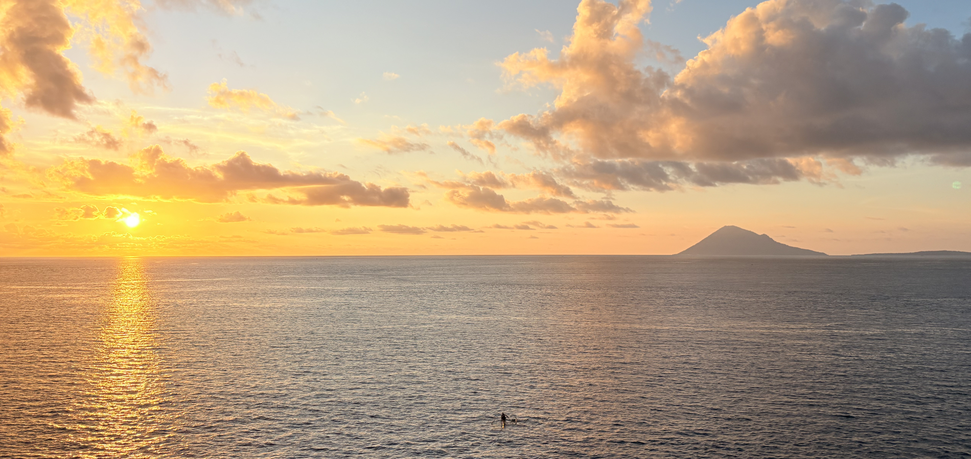 力強く空を翔ける翼と、希望に満ちた夜明けの光。